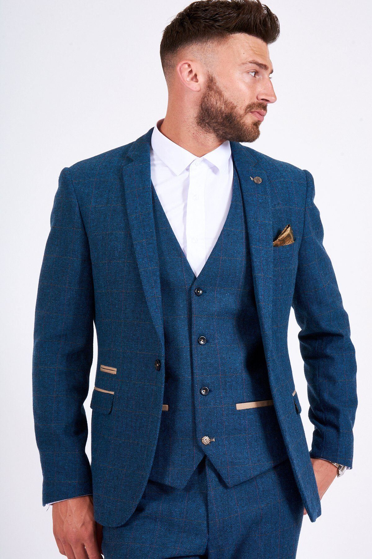 Marc Darcy – Dion Blue Tweed Check Suit